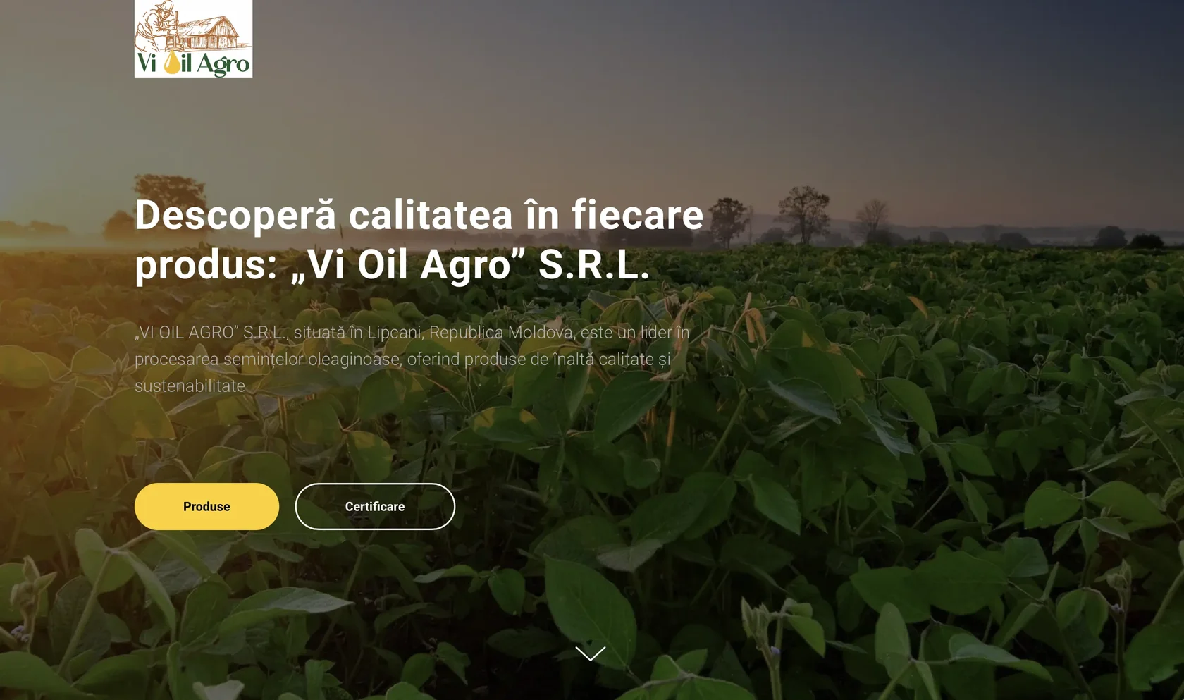 Am dezvoltat un landing page responsive, optimizat pentru toate dispozitivele, care reflectă identitatea vizuală a Vi Oil Agro și facilitează accesul rapid la informațiile esențiale.